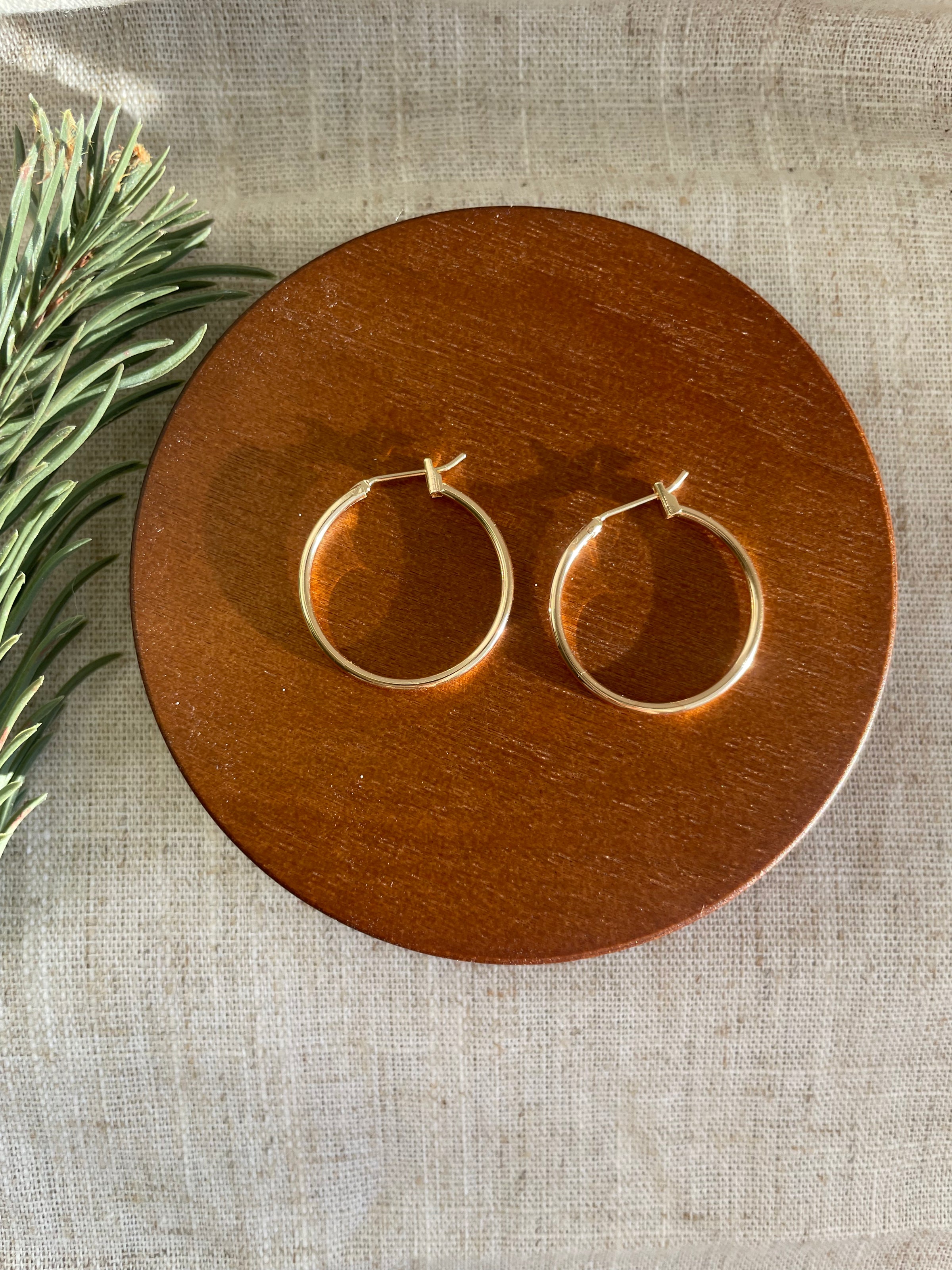 25 mm hoops able to be worn solely as a hoop or with an added charm like our natural baroque pearls, flowing primrose petals and Iris clay arch